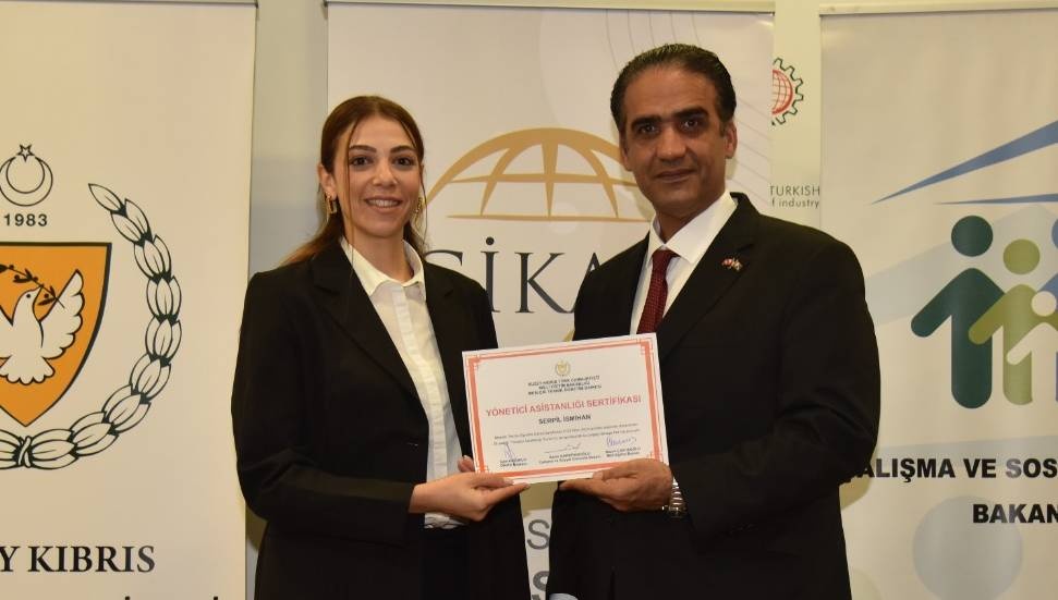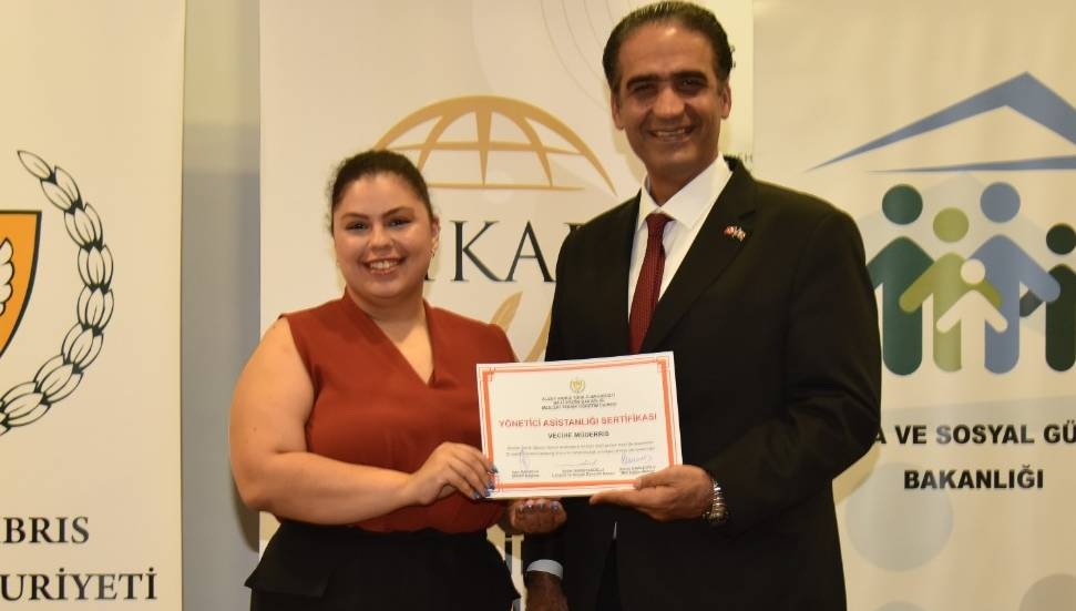 Çalışma ve Sosyal Güvenlik Bakanlığı ile Kıbrıs Türk Girişimci Kadınlar Derneği (GİKAD) işbirliğinde düzenlenen "Asistanım Olur Musun?" Projesi kapsamındaki yönetici asistanlığı eğitimlerini tamamlayanlara sertifikaları verildi.
