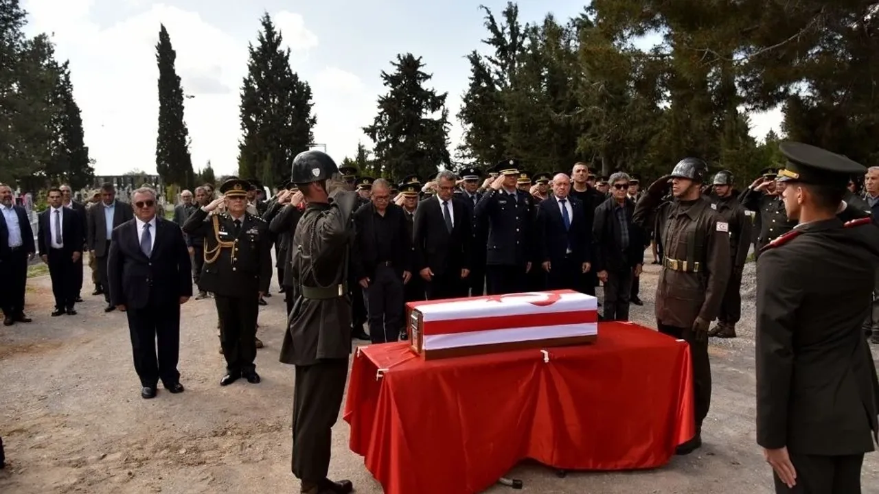 Konuşmaların ardından cenaze namazı kılındı, naaş Ortaköy Şehitliği’ne taşındı. Saygı duruşu ve saygı atışının ardından Cumhurbaşkanı Erhürman, tabuta sarılı bayrağı aileye teslim etti.