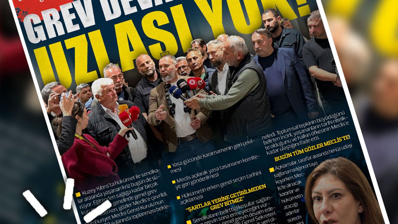 Kuzey Kıbrıs’ta hükümet ile sendikalar arasında yaşanan kriz bugün de sürüyor. Eğitimden sağlığa kadar birçok kurumda, ülke genelinde genel grev devam ederken, gözler Meclis’e çevrildi. Cumhuriyet Meclisi Genel Kurulu’nun saat 09.30 sularında toplanması bekleniyor.