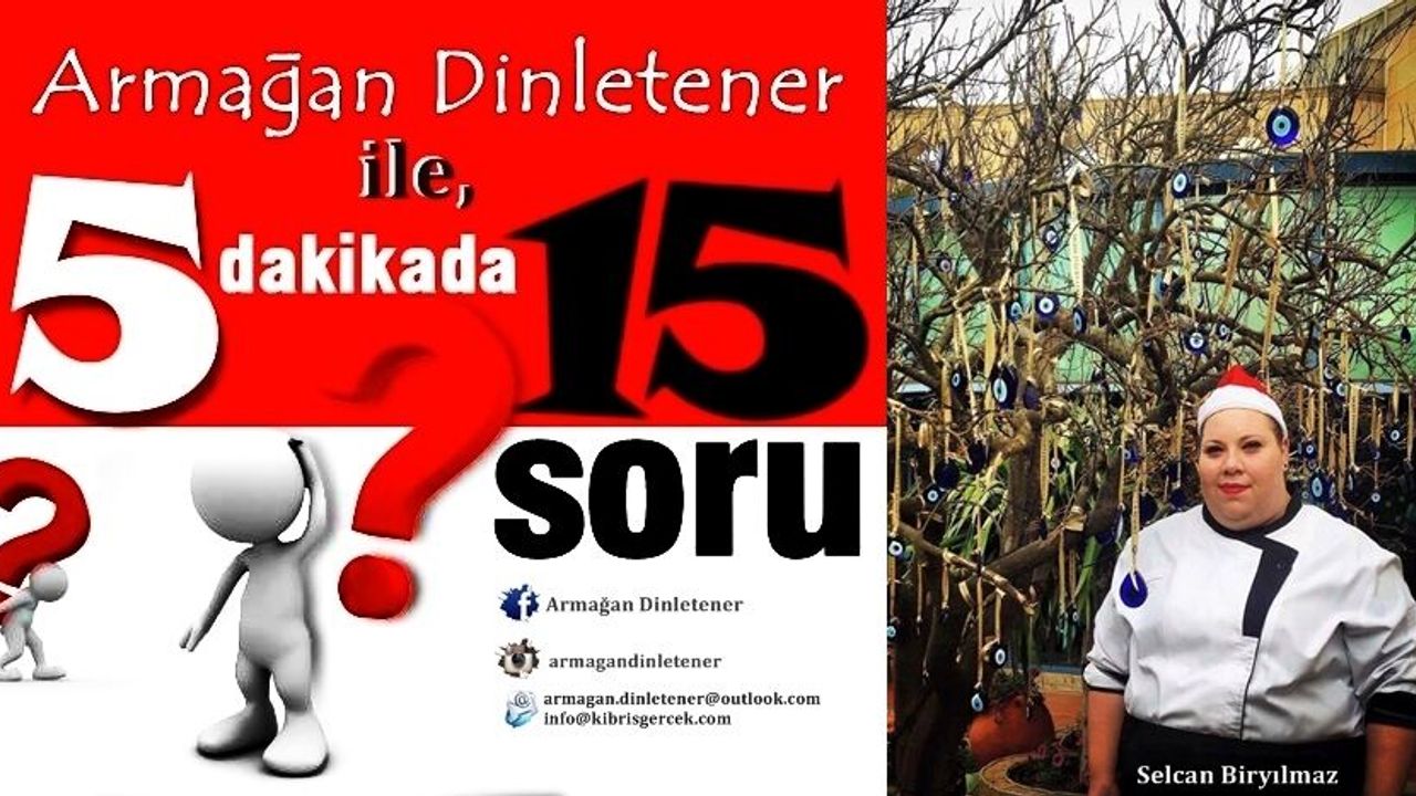 ''Armağan Dinletener ile 5 Dakika'da 15 Soru'' Bir ''Kıbrıs Gerçek'' Köşesidir. Tüm hakları saklıdır. ® ''Kıbrıs Gerçek'' Genel Yayın Yönetmeni ve Magazin Müdürü Armağan Dinletener Tel: 0533 830 3783 e-mail: [email protected] [email protected]