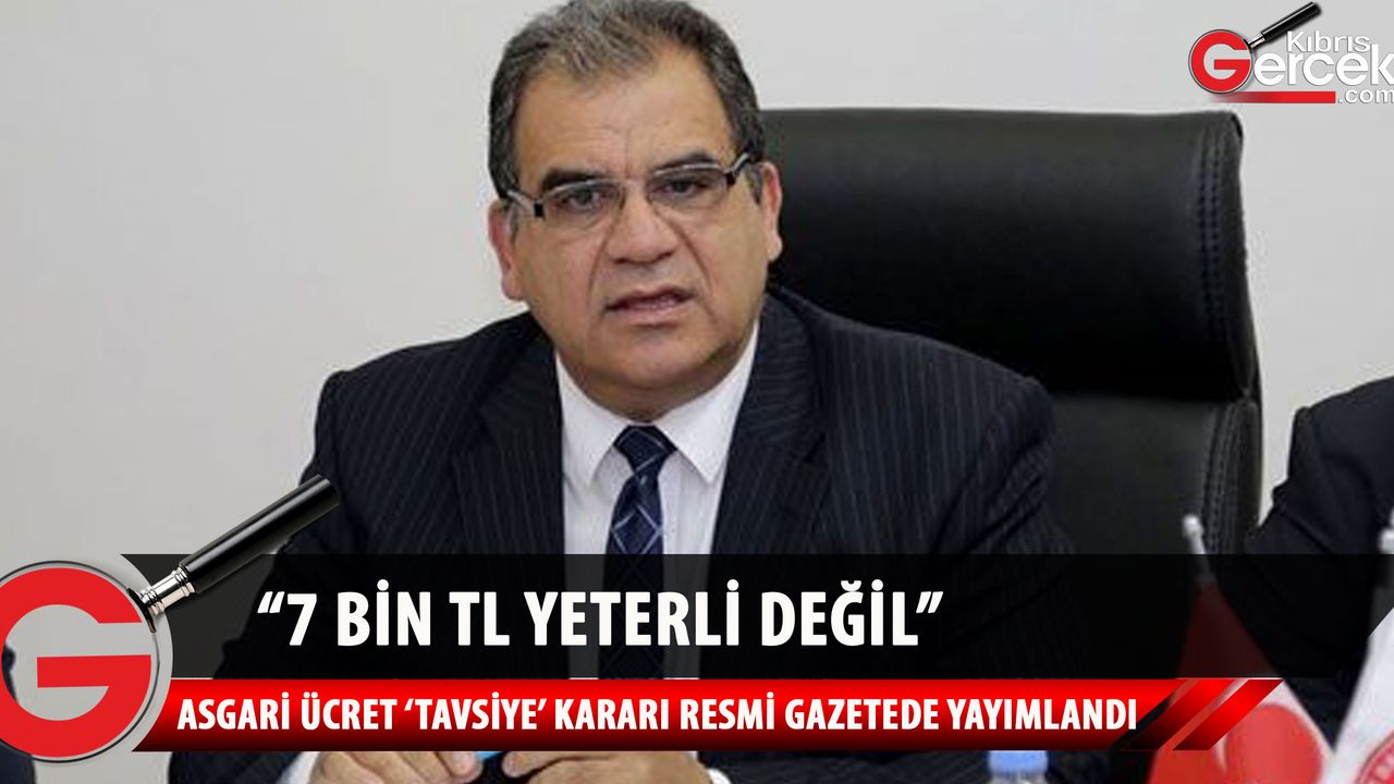 Başbakan Faiz Sucuoğlu brüt 7 bin TL, net 6 bin 90 TL’lik asgari ücretin “tavsiye” kararı olarak Resmi Gazete’de bugün itibariyle yayınladıklarını, 10 günlük itiraz sürecinin başladığını kaydetti.