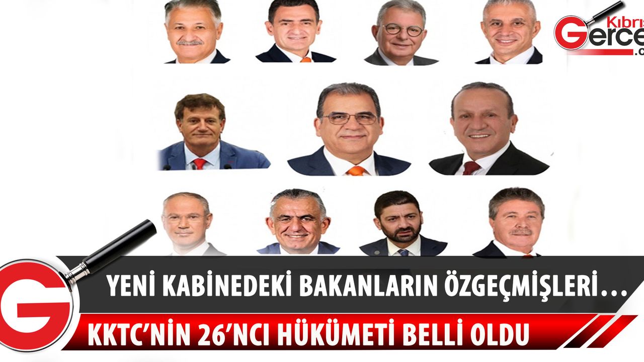 Başbakan Faiz Sucuoğlu, KKTC’nin 26’ncı hükümeti olan UBP-DP-YDP koalisyon hükümetinin kabinesini Cumhurbaşkanı Ersin Tatar’a sundu. Buna göre yeni kabinede Başbakan Faiz Sucuoğlu (UBP), Ekonomi ve Enerji Bakanı Kutlu Evren (UBP), Turizm ve Çevre Bakanı Fikri Ataoğlu (DP), Dışişleri Bakanı Hasan Taçoy (UBP), Maliye Bakanı Sunat Atun (UBP), İçişleri Bakanı Ünal Üstel (UBP), Bayındırlık ve Ulaştırma Bakanı Erhan Arıklı (YDP), Milli Eğitim ve Kültür Bakanı Nazım Çavuşoğlu (UBP), Tarım ve Doğal Kaynaklar Bakanı Dursun Oğuz (UBP), Sağlık Bakanı Ali Pilli (UBP), Çalışma ve Sosyal Güvenlik Bakanı Oğuzhan Hasipoğlu (UBP) oldu.