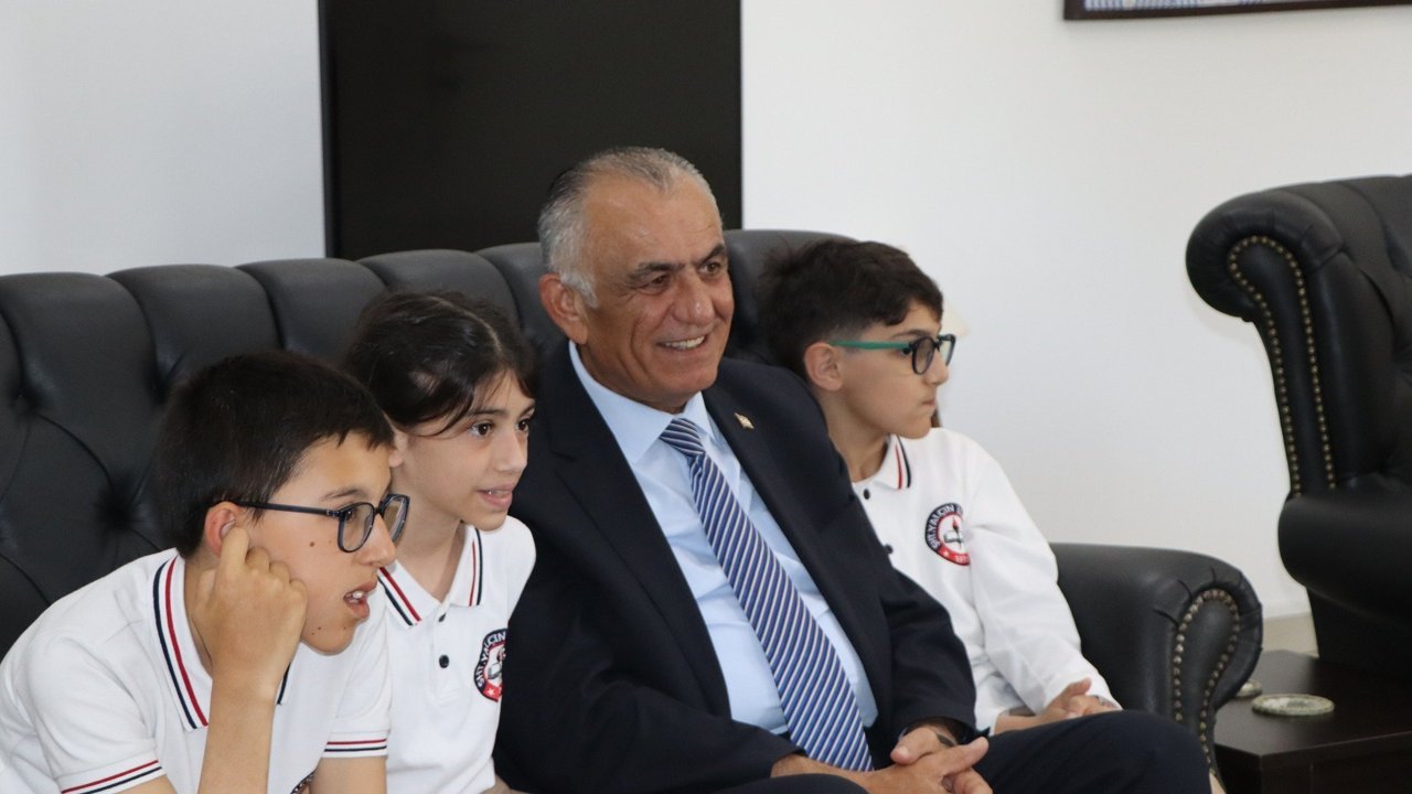 Nazım Çavuşoğlu, Şehit Yalçın İlkokulu öğrencilerini kabul ederek makamını öğrenci Hasan Basmaz’a devretti.