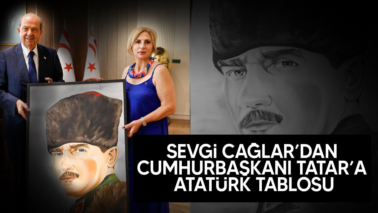 Sanatçı Sevgi Çağlar ise Cumhurbaşkanlığında bulunmaktan duyduğu onuru dile getirerek, Atatürk tablosunu Ersin Tatar’a armağan etmekten mutluluk duyduğunu belirtti.