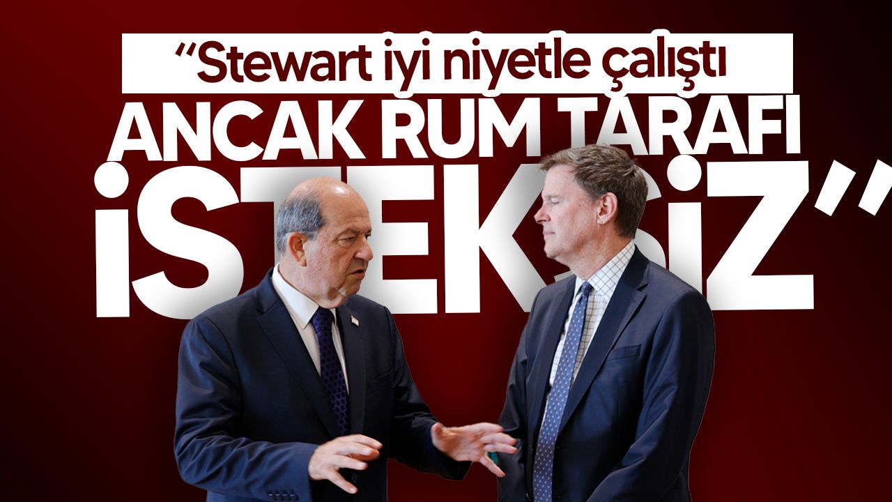 Cumhurbaşkanı Tatar, Stewart’ın giderayak yaptığı bazı açıklamalara tepki göstererek, “Görev tanımınız buna izin vermez” mesajını ilettiğini belirtti. “Egemen eşitlik kabul edilmeden müzakere başlayamaz” diyen Tatar, ortak zemin olmadığı için yeni bir resmi sürece geçilmesi gerektiğini vurguladı.