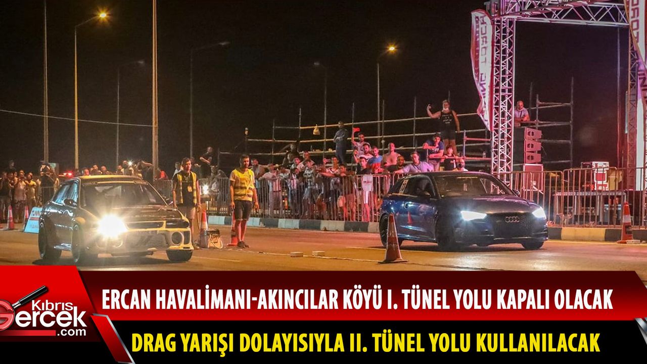 Kuzey Kıbrıs Drag ve Spor Otomobil Derneği'nin düzenlediği Drag Yarışı dolayısıyla bugün 17-22.00 ile yarın 17-23.00 saatleri arasında, Ercan Havalimanı-Akıncılar köyü, I. Tünel yolu kapalı olacak.
