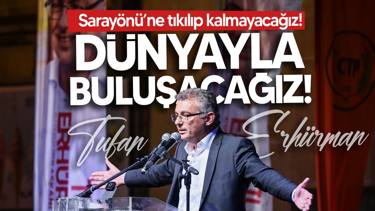 “Beş bomboş yıl geçti. Bu ülkenin en kıymetli makamlarından biri, bu beş boş yılda “tören paşası” makamına dönüştürüldü” diyen Erhürman, ne içeride ne dışarıda bir şey yapıldığını vurguladı. Geçmiş dört cumhurbaşkanının da bu halkın çıkarlarını korumak için müzakere masasında mücadele ettiğini belirten Erhürman, Beş senedir neden bir müzakere yok? Farklı bir çözüm modelinden mi bahsediyorsun, yoksa “Çözümsüzlük çözümdür, Sarayönü bize yeter.” mi diyorsun? Biz çok açık söylüyoruz: Sarayönü’ne tıkılıp kalmayacağız! Dünyayla buluşacağız! Gençlerimiz dünyayla buluşacak!” dedi. Tufan Erhürman, “Ben cumhurbaşkanı olmak derdinde değilim; ben beş yıldır bu ülkede yapılmayanı yapmak, cumhurbaşkanlığı yapmak derdindeyim. Olmak değil, yapmak derdindeyim” diye konuştu.