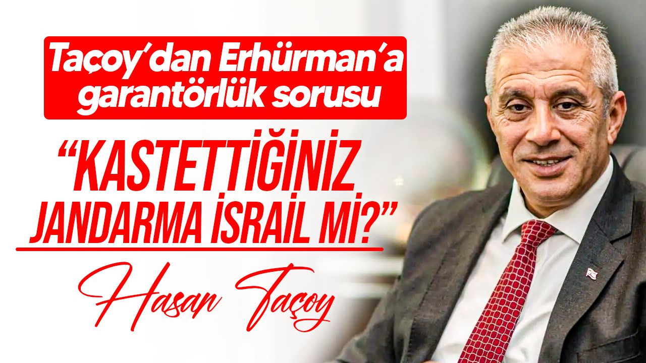 CTP adayı Tufan Erhürman’a seslenen Taçoy, “Garantörlük sona ermeli derken bunun nelere mal olacağını iyi hesaplamak gerekir” dedi. Erhürman’ın daha önce dile getirdiği “tüm garantörler çekilsin, bir jandarma gelsin” sözlerini hatırlatan Taçoy, “Kastettiğiniz jandarma İsrail midir?” sorusunu yöneltti.