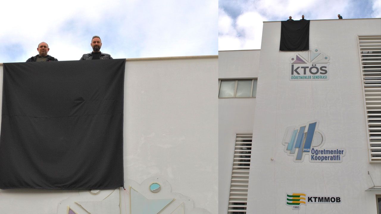 Bu kapsamda, KTMMOB ofisinin de bulunduğu KTÖS binasına siyah bayrak asıldı.