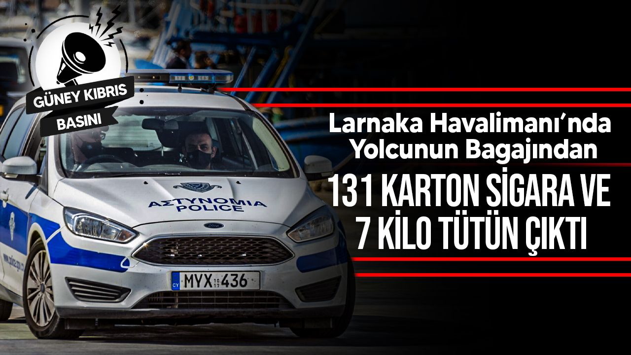 Larnaka Havalimanı’nda önceki gün yurtdışına gitmeye hazırlanan 43 yaşındaki bir yolcunun bagajında yapılan aramada, gümrüğe beyan edilmemiş 131 karton sigara ve 6 kilo 950 gram sarma sigara tütünü ele geçirildi.
