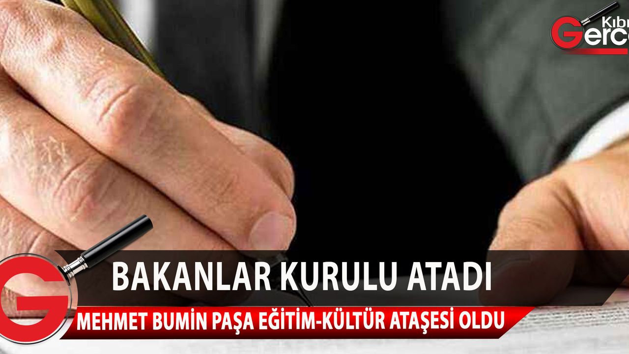 Bakanlar Kurulu, Müşavir Mehmet Bumin Paşa’nın KKTC Gaziantep Başkonsolosluğu'na Eğitim-Kültür Ataşesi olarak atanmasına karar verdi. 15 Nisan 2022 tarihinden itibaren geçerli olacak karar, bugünkü Resmi Gazete’de yayımlandı.