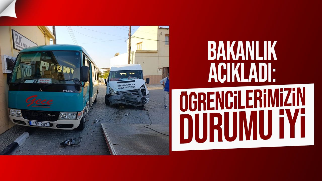 İskele Belediyesi önünde bu sabah meydana gelen ve iki okul otobüsünün karıştığı trafik kazasıyla ilgili Milli Eğitim Bakanlığı tarafından açıklama yapıldı. Bakanlık, kazaya karışan öğrencilerin sağlık durumlarının iyi olduğunu duyurdu.