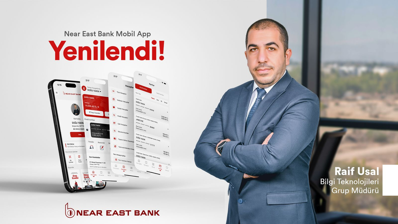 Near East Bank Bilgi Teknolojileri Grup Müdürü Raif Usal, Dijitalleşme rüzgarları bankacılık sektörünü dönüştürürken, biz de Near East Bank olarak bu değişimin öncülerinden olmaktan gurur duyuyoruz.Sadece bir uygulama değil; geleceğe açılan bir kapı sunuyoruz müşterilerimize. Yenilenen mobil uygulamamız, artık sadece bir işlem aracı olmanın ötesinde, her an yanlarında olan bir dijital asistan gibi tasarlandı. Amacımız, bankacılık hizmetlerini herkes için erişilebilir, güvenli ve en önemlisi zahmetsiz hale getirmek.