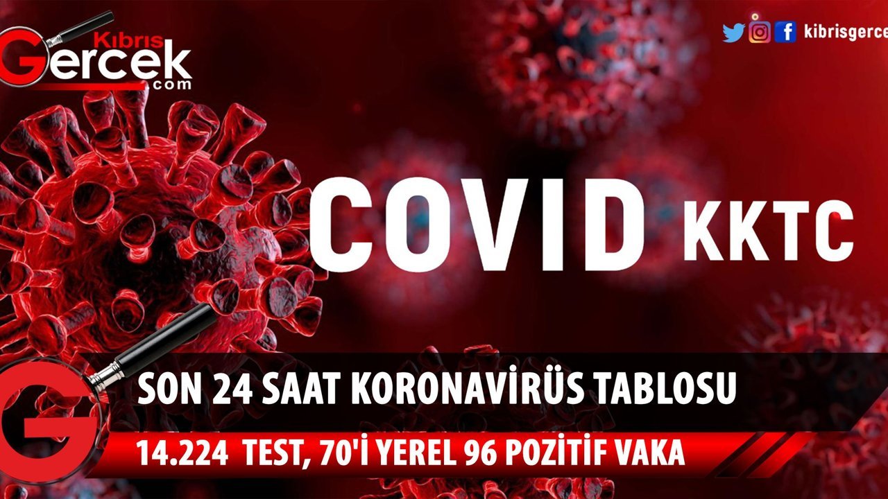 Son 24 saatte yapılan test sayısı 14.224 olup, 70'i yerel 96 pozitif vakaya rastlanmış, 58 kişi taburcu edilmiştir.