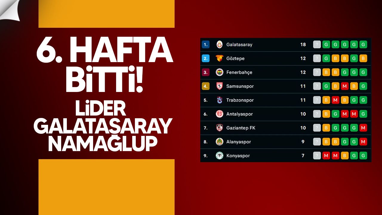 Süper Lig’de 6. hafta bugün oynanan Galatasaray-Konyaspor karşılaşmasıyla tamamlandı. Lider Galatasaray, sahasında Konyaspor’u 3-1 mağlup ederek yoluna kayıpsız devam etti. Sarı-kırmızılılar, en yakın rakibi Göztepe’nin 6 puan önünde zirvedeki yerini korudu.