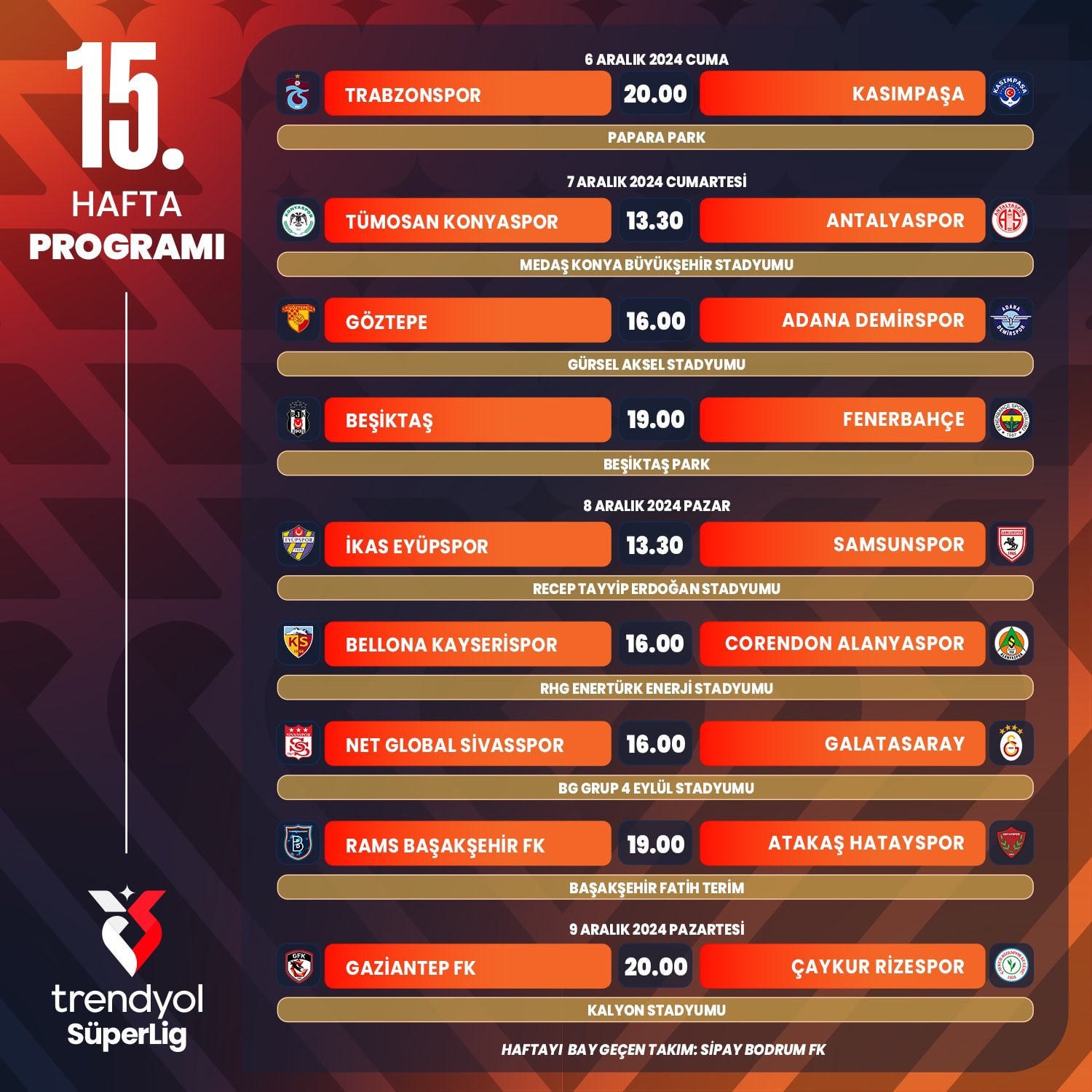 Süper Lig'de 7-17. haftaların fikstürü açıklandı. Galatasaray - Beşiktaş maçı 28 Ekim Pazartesi günü saat 20.00’de oynanacak.