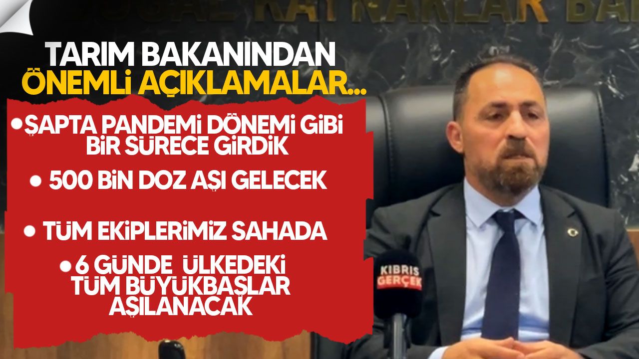 Şap hastalığıyla mücadelede kritik aşamaya geçildiğini belirten Çavuş, 500 bin doz aşının bu akşam ülkeye ulaşmasının beklendiğini açıkladı. İlk aşılama programı kapsamında Veteriner Dairesi’nin 6 gün içinde tüm büyükbaş hayvanları aşılayacağını ifade etti.