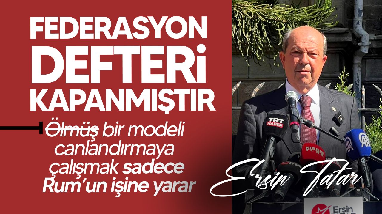 “Türkiye Cumhuriyeti Cumhurbaşkanı Sayın Erdoğan’ın liderliğinde Anavatan Türkiye en üst düzeyde ve herkesin anlayabileceği netlikte ‘Federasyon defteri bir daha açılmamak üzere kapanmıştır’ dedi. Buna rağmen bazılarının bunu duymazdan gelmesi veya anlamazdan gelmesi düşündürücüdür. Federasyon modeli yarım asır boyunca denendi. Türk tarafı hep iyi niyetle masadaydı, ama Rum tarafının değişmeyen zihniyeti nedeniyle sonuçsuz kaldı. Artık ölmüş bir modeli canlandırmaya çalışmak sadece Rum’un işine yarar. Biz izolasyon ve ambargolarla yaşamaya mahkûm ediliyoruz. Buna vizyon denmez, buna öğretilmiş çaresizlik denir.”