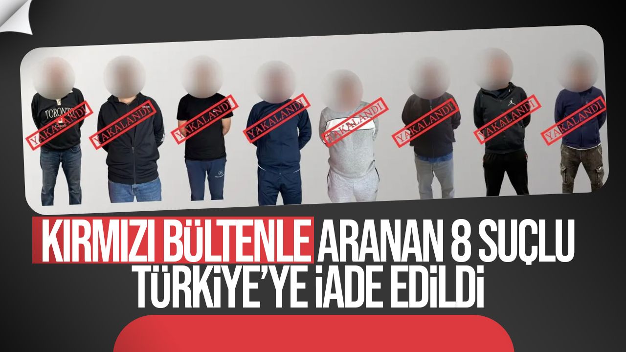 Türkiye İçişleri Bakanı Ali Yerlikaya, kırmızı bültenle ve ulusal seviyede aranan toplam 8 kişinin yakalanarak Türkiye’ye iade edildiğini açıkladı. Yerlikaya, gelişmeyi sosyal medya platformu X üzerinden duyurdu.