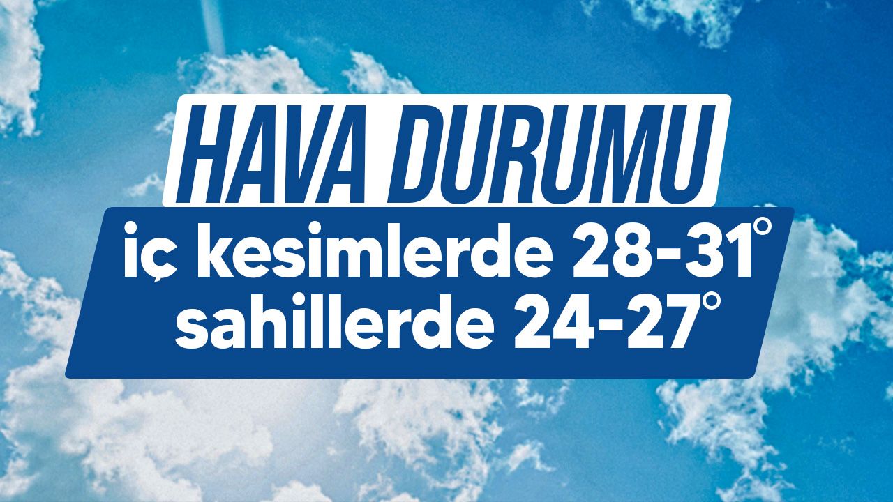 En yüksek hava sıcaklığı iç kesimlerde 28-31 derece, sahil kesimlerinde ise 24-27 derece dolaylarında olacak.
