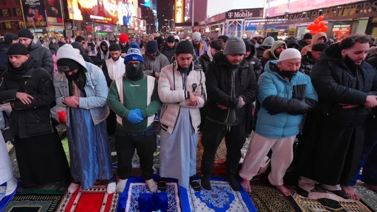 New York kentinde yaşayan yüzlerce Müslüman, şehrin en ünlü ve işlek alanlarından Times Meydanı’nda iftar yaptı.